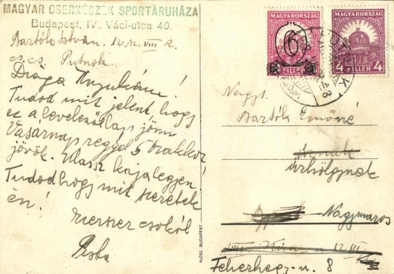 Beschreibung: 1932 Mickey Mouse ice skating. Klösz early Disney art postcard s: Bisztriczky + "Magyar Cserkészek Sportáruháza Budapest IV. Váci utca 40."(EK)