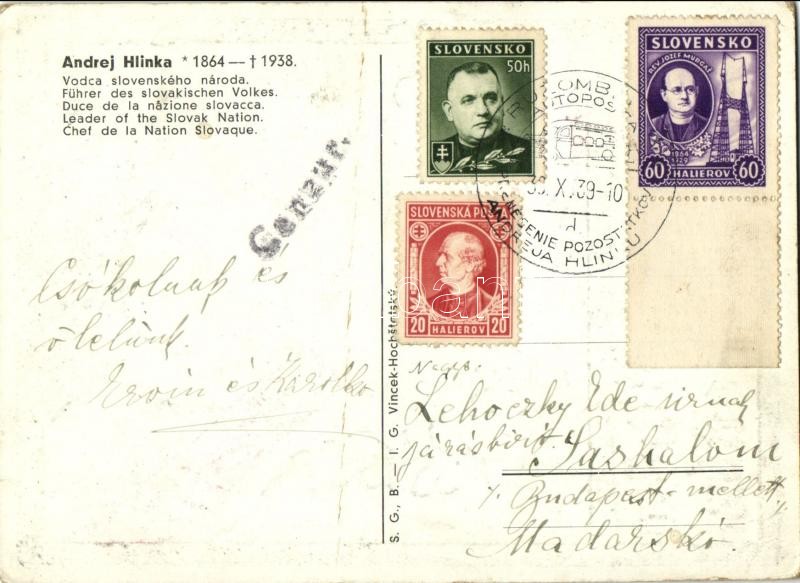 Beschreibung: Andrej Hlinka (1764-1938), sa zaslúzil o národ / Andrej Hlinka, Slovak Catholic priest, leader of the Slovak People's Party. s: Vincek-Hochstetsky + 1939 Ruzomberok, Trnava Autoposta prenesenie pozostatkov Andreja Hlinku So. Stpl. (EK)