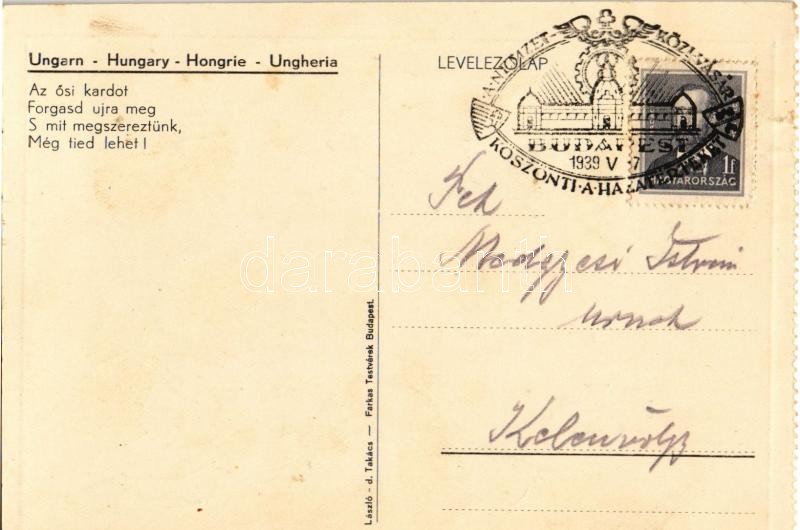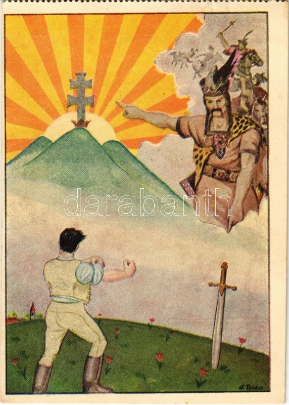 Az ősi kardot forgasd meg újra s mit megszereztünk, még tied lehet! / Hungarian irredenta art postcard s: László d. Takács + "1939 Budapest A Nemzetközi Vásár Köszönti a Hazatérteket" So. Stpl