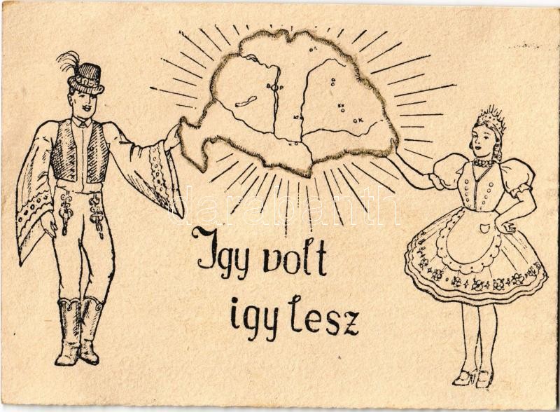 Így volt így lesz! Aranyozott díszítés Nagymagyarország határánál / Hungarian Irredenta greeting art postcard. Golden decoration on the border of the Kingdom of Hungary s: Pálffy