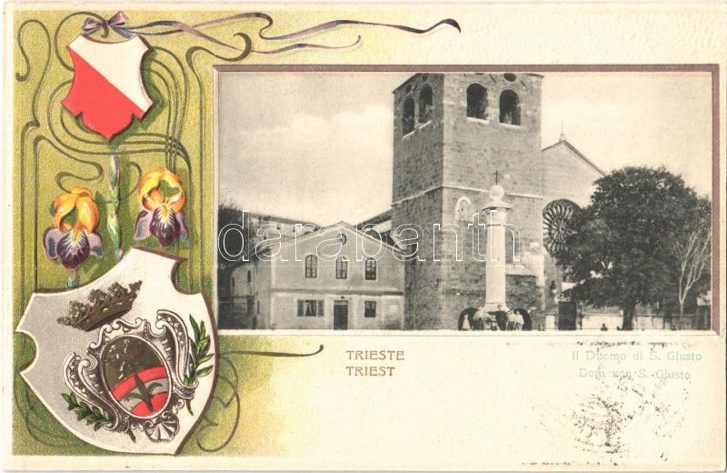 Trieste, Trieszt; Il Duomo di S. Giusto. Rudolf Wolf / dome. Art Nouve... https://www.darabanth.com/de/32-Gross-Auktion/32.1/Ansichtskarten/Italien~13774/Trieste-Trieszt-Il-Duomo-di-S-Giusto-Rudolf-Wolf-dome-Art-Nouveau-floral-coat-of-arms-Emb~II2045884