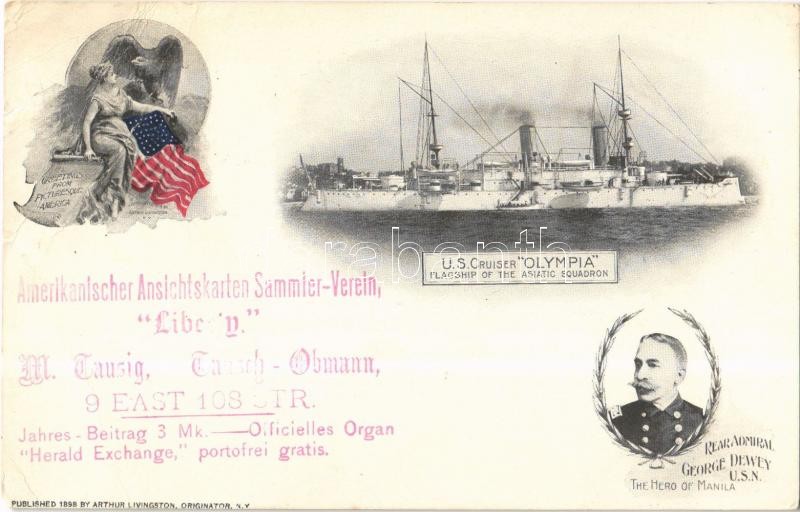 1898 US Cruiser Olympia, flagship of the Asiatic Squadron. Rear Admira... https://www.darabanth.com/de/32-Gross-Auktion/32.1/Ansichtskarten/Kriegsschiffe~13795/1898-US-Cruiser-Olympia-flagship-of-the-Asiatic-Squadron-Rear-Admiral-George-Dewey-USN-the-hero-~II2046802