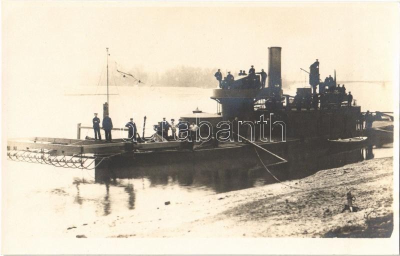 1915 Budapest, SMS Körös osztrák-magyar haditengerészet monitora télen a kikötőben, legénység a fedélzeten. Dunaflottilla / K.u.K. Kriegsmarine Donauflottille / WWI Austro-Hungarian Navy river monitor, mariners on board. photo