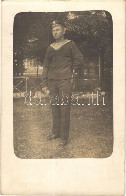1917 Pola, SM Tb 93 F (később Jugoszláv T6) osztrák-magyar haditengerészet 250t osztályú torpedónaszádjának matróza szárazföldön / K.u.K. Kriegsmarine SM Tb 93, Matrose / Mariner of Austro-Hungarian Navy torpedo boat SM Tb 93F on mainland. photo (Rb)