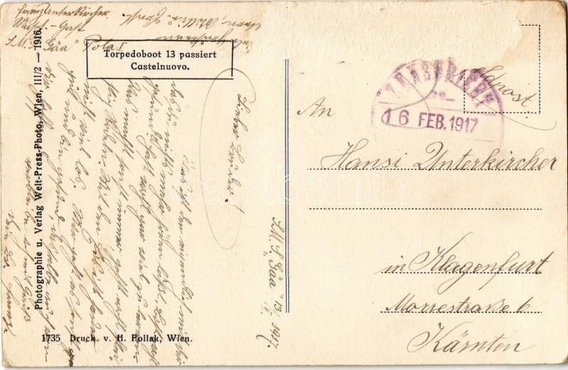 SM Tb 13 (ex Python) osztrák-magyar haditengerészet Cobra-osztályú torpedónaszád Castelnuovonál / K.u.K. Kriegsmarine SM Torpedoboot 13 (ex Python) / Austro-Hungarian Navy SM Tb 13 (ex Python) Cobra-class torpedo boat passing Herceg Novi. Welt-Press Photo (Rb)