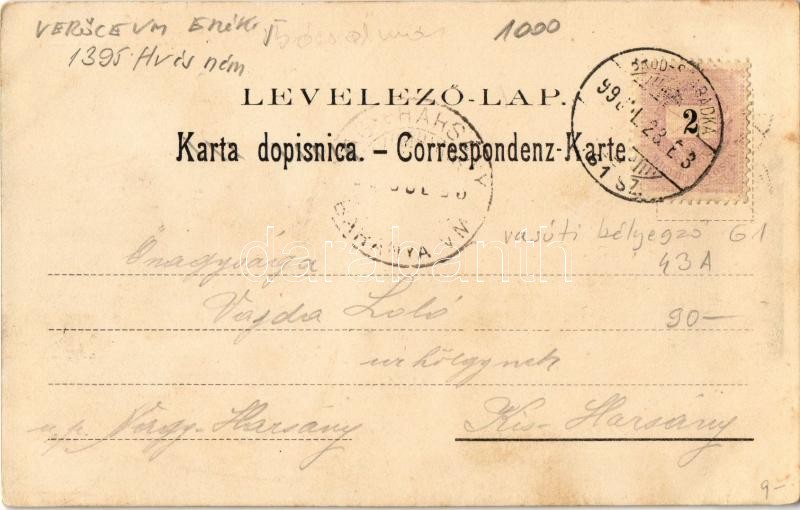 Beschreibung: 1899 Almás, Apfeldorf, Aljmas (Erdőd, Ardut); Gruss aus Dalja... Ottokar Rechnitzer No. 73.
