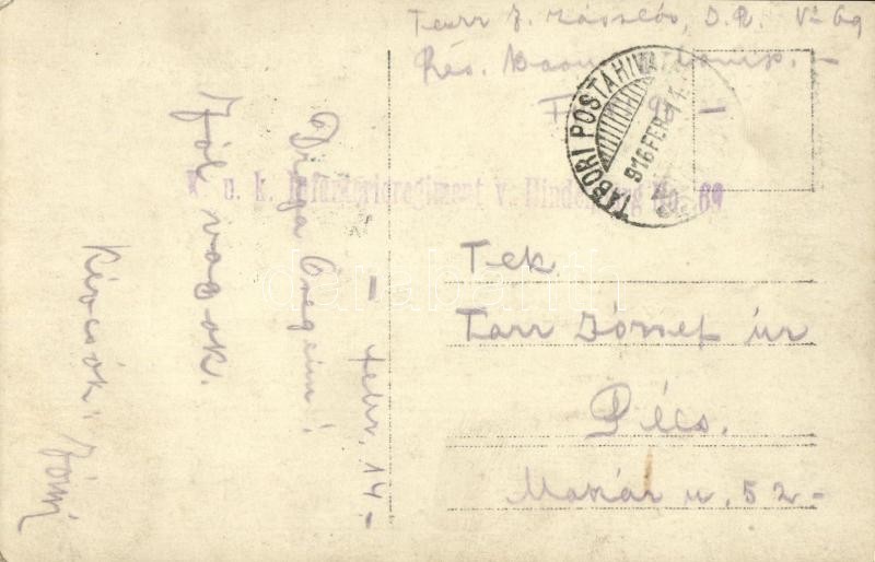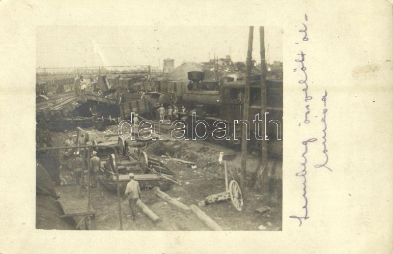 Beschreibung: 1916 Lviv, Lwów, Lemberg; az összedőlt vasútállomás romjai, gőzmozdony, katonák / WWI K.u.k. (Austro-Hungarian) military, destroyed railway station with ruins, locomotive and soldiers. photo + "K.u.K. Infanterieregiment v. Hindenburg No. 69"