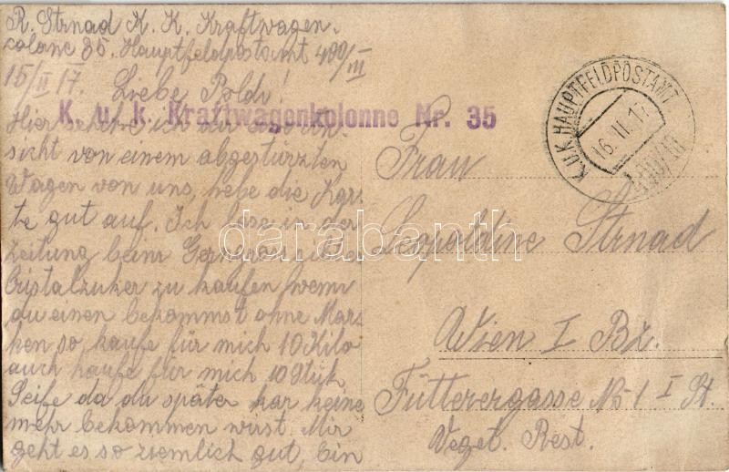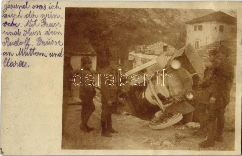 1917 Austro-Hungarian motor convoy soldiers with overturned automobile... https://www.darabanth.com/de/32-Gross-Auktion/32.1/Ansichtskarten/Militaria~13801/1917-Austro-Hungarian-motor-convoy-soldiers-with-overturned-automobile-photo-plus-KuK-Kraftwagenko~II2028000
