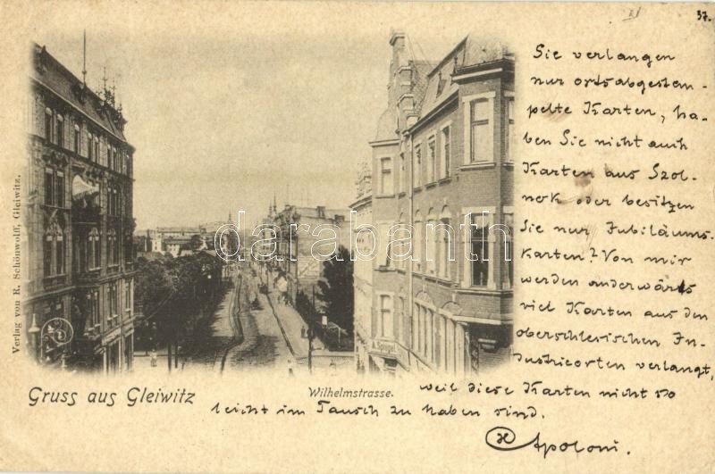 1898 Gliwice, Gleiwitz; Wilhelmstrasse / street https://www.darabanth.com/de/32-Gross-Auktion/32.1/Ansichtskarten/Polen~13765/1898-Gliwice-Gleiwitz-Wilhelmstrasse-street~II2035957