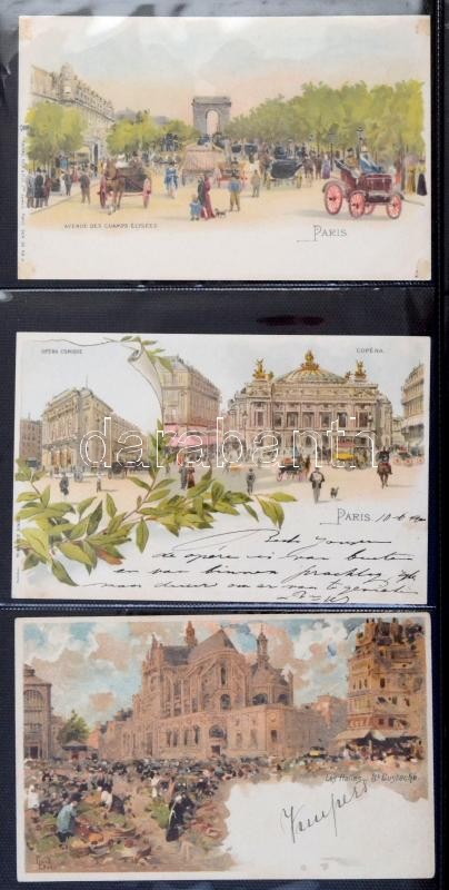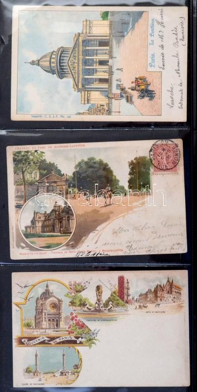 Beschreibung: 40 db RÉGI francia képeslap albumban: csak Párizsi lithok. Vegyes minőség / 40 pre-1910 French postcards in album: only Paris lithos. Mixed quality