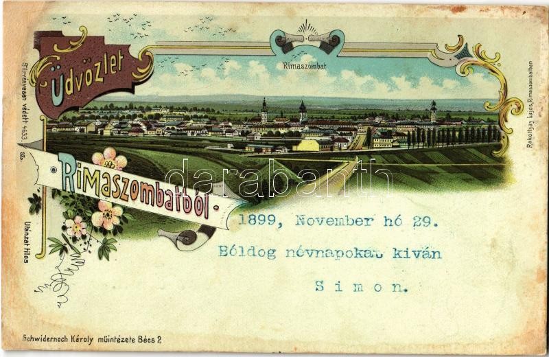 1899 Rimaszombat, Rimavská Sobota; Schwidernoch Károly Art Nouveau, fl... https://www.darabanth.com/de/32-Gross-Auktion/32.1/Ansichtskarten/Slowakei~13727/1899-Rimaszombat-Rimavska-Sobota-Schwidernoch-Karoly-Art-Nouveau-floral-litho-r~II2036763