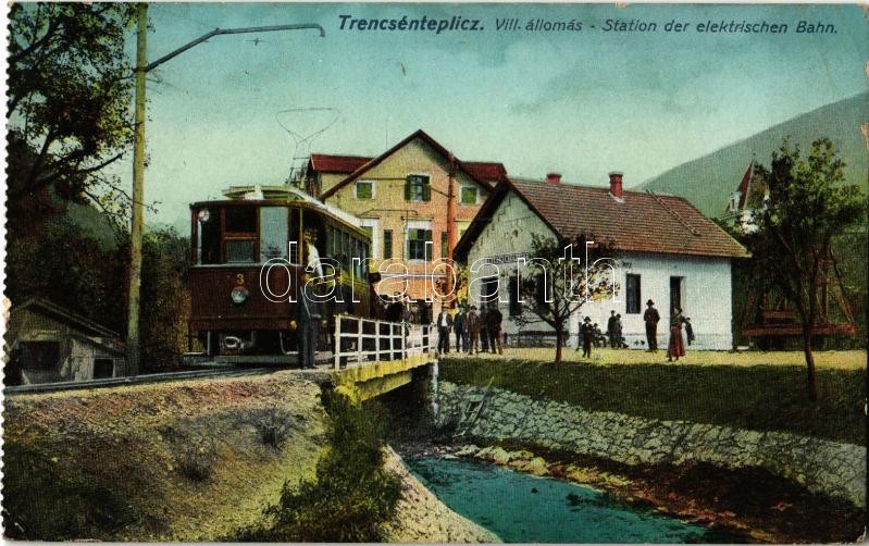 1912 Trencsénteplic, Trencianske Teplice; Villamos vasútállomás / Stat... https://www.darabanth.com/de/32-Gross-Auktion/32.1/Ansichtskarten/Slowakei~13727/1912-Trencsenteplic-Trencianske-Teplice-Villamos-vasutallomas-Station-der-elektrischen-Bahn-~II2033861