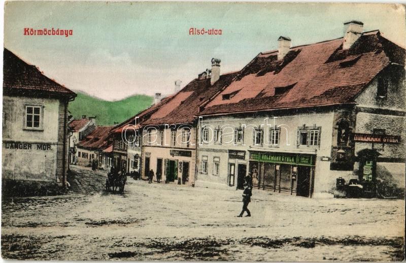 Körmöcbánya, Kremnitz, Kremnica; Alsó utca, Holzmann Gyula és Langer M... https://www.darabanth.com/de/32-Gross-Auktion/32.1/Ansichtskarten/Slowakei~13727/Kormocbanya-Kremnitz-Kremnica-Also-utca-Holzmann-Gyula-es-Langer-Mor-uzlete-street-view~II2033342