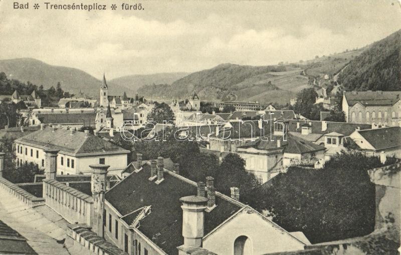 Trencsénteplic, Trencianske Teplice; látkép a városról / general view... https://www.darabanth.com/de/32-Gross-Auktion/32.1/Ansichtskarten/Slowakei~13727/Trencsenteplic-Trencianske-Teplice-latkep-a-varosrol-general-view-Rb~II2035767