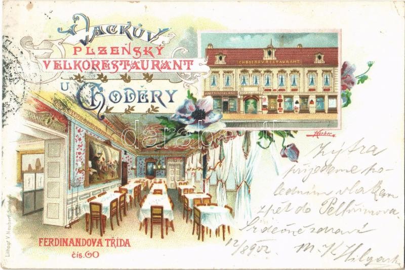 1902 Praha, Prag, Prague; Vackuv Plzensky Velkorestaurant u Chodery. F... https://www.darabanth.com/de/32-Gross-Auktion/32.1/Ansichtskarten/Tschechische-Republik~13746/1902-Praha-Prag-Prague-Vackuv-Plzensky-Velkorestaurant-u-Chodery-Ferdinandova-Trida-cis-Co-~II2042987