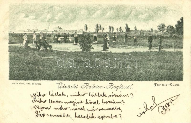 1899 Balatonboglár, Tenisz klub / tennis club. Rigler Részv. Társ. https://www.darabanth.com/de/32-Gross-Auktion/32.1/Ansichtskarten/Ungarn~13725/1899-Balatonboglar-Tenisz-klub-tennis-club-Rigler-Reszv-Tars~II2043807