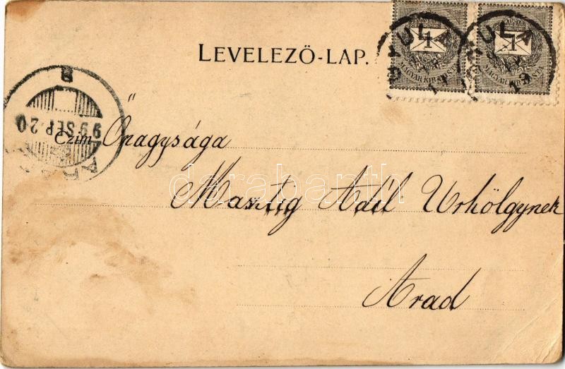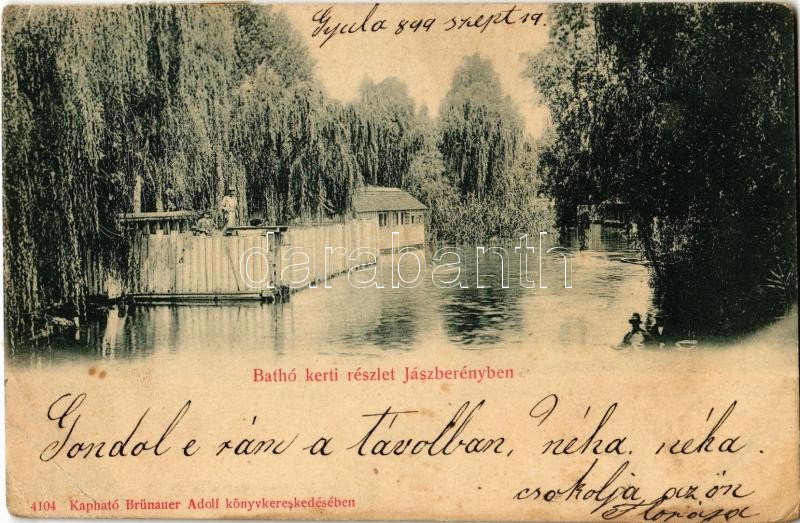 Beschreibung: 1899 Jászberény, Bathó kerti részlet. Kapható Brünauer Adolf könyvkereskedésében (EK)