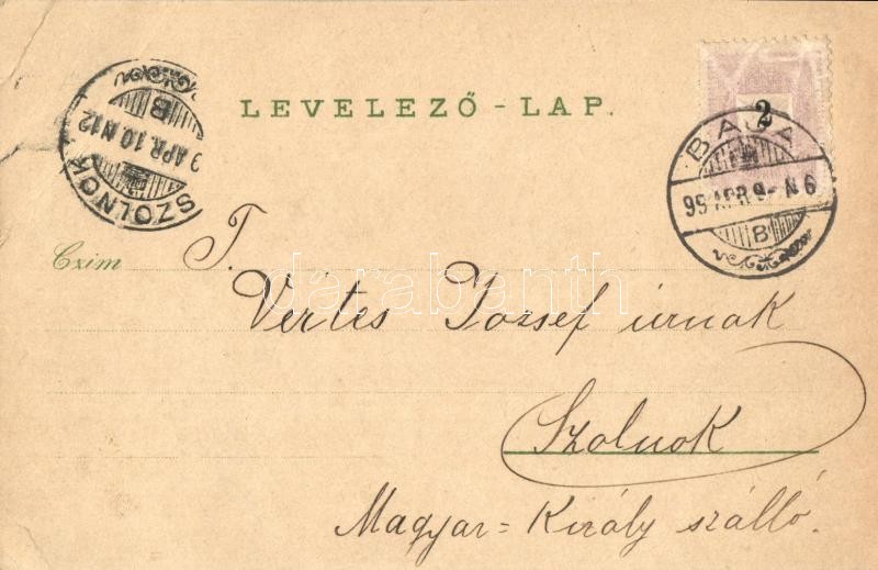 Beschreibung: 1899 (Vorläufer!) Baja, Korzó, Tóth Kálmán tér és szobor, Fő tér. Rudolf Oesterreicher Art Nouveau, floral, litho (EB)