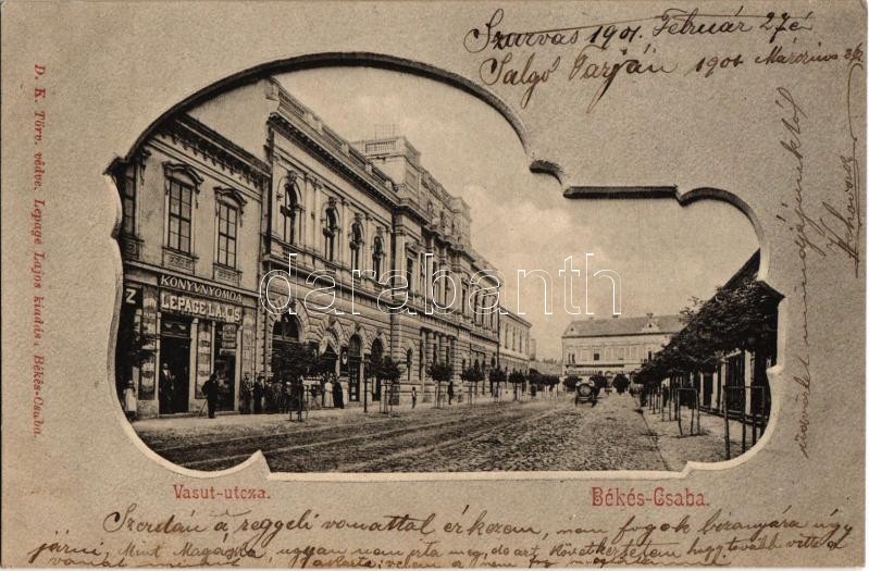 1901 Békéscsaba, Békés-Csaba; Vasút utca, Bille Bernát üzlete, Városi ... https://www.darabanth.com/de/32-Gross-Auktion/32.1/Ansichtskarten/Ungarn~13725/1901-Bekescsaba-Bekes-Csaba-Vasut-utca-Bille-Bernat-uzlete-Varosi-szinhaz-Lepage-Lajo~II1948393