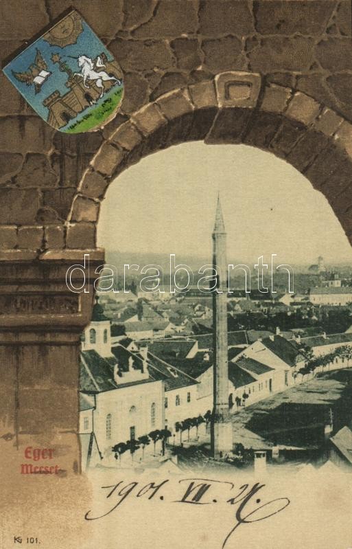 1901 Eger, mecset. Címeres szecessziós litho keret, Art Nouveau https://www.darabanth.com/de/32-Gross-Auktion/32.1/Ansichtskarten/Ungarn~13725/1901-Eger-mecset-Cimeres-szecesszios-litho-keret-Art-Nouveau~II2043815