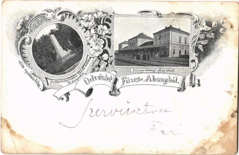 1901 Füzesabony, vasútállomás, Szabadság szobra Berek erdőben. Art Nou... https://www.darabanth.com/de/32-Gross-Auktion/32.1/Ansichtskarten/Ungarn~13725/1901-Fuzesabony-vasutallomas-Szabadsag-szobra-Berek-erdoben-Art-Nouveau-floral-EK~II2046619