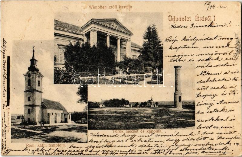 1903 Érd, Római katolikus templom, Török mecset és kápolna, Wimpffen g... https://www.darabanth.com/de/32-Gross-Auktion/32.1/Ansichtskarten/Ungarn~13725/1903-Erd-Romai-katolikus-templom-Torok-mecset-es-kapolna-Wimpffen-grofi-kastely~II2027356