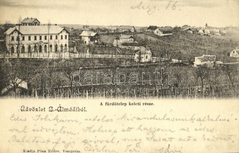 Beschreibung: 1905 Balatonalmádi, Fürdőtelep keleti része. Pósa Endre kiadása