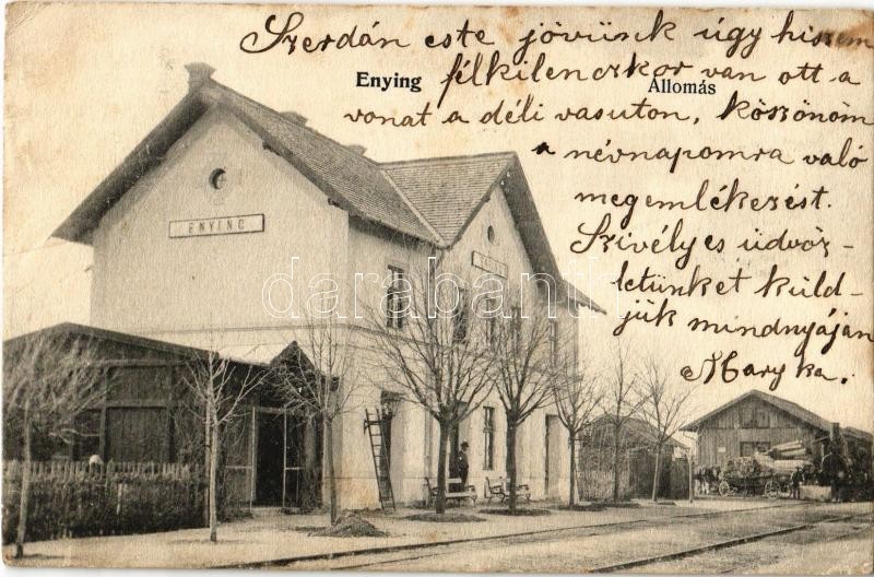 1905 Enying, vasútállomás, gőzmozdony. Politzer Jenő kiadása (EK) https://www.darabanth.com/de/32-Gross-Auktion/32.1/Ansichtskarten/Ungarn~13725/1905-Enying-vasutallomas-gozmozdony-Politzer-Jeno-kiadasa-EK~II2028657
