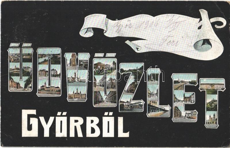 Beschreibung: 1906 Győr, Üdvözlet. Berecz Viktor kiadása, Art Nouveau (EK)