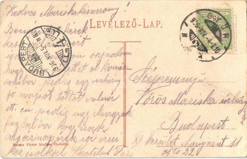 1906 Győr, Üdvözlet. Berecz Viktor kiadása, Art Nouveau (EK) https://www.darabanth.com/de/32-Gross-Auktion/32.1/Ansichtskarten/Ungarn~13725/1906-Gyor-Udvozlet-Berecz-Viktor-kiadasa-Art-Nouveau-EK~II2046119