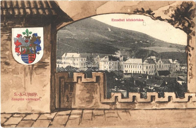 1906 Sátoraljaújhely, Erzsébet közkórház. Zemplén vármegye, címer. Wei... https://www.darabanth.com/de/32-Gross-Auktion/32.1/Ansichtskarten/Ungarn~13725/1906-Satoraljaujhely-Erzsebet-kozkorhaz-Zemplen-varmegye-cimer-Weinwurm-A-kiadasa-Ar~II2046885