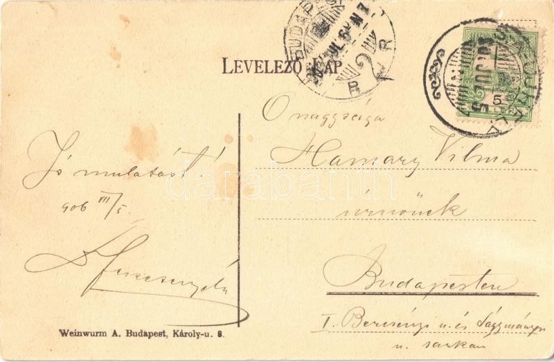 Beschreibung: 1906 Sátoraljaújhely, Erzsébet közkórház. Zemplén vármegye, címer. Weinwurm A. kiadása, Art Nouveau