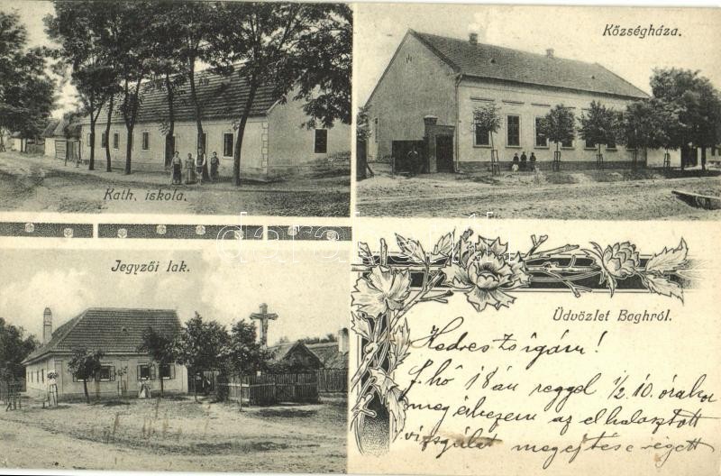1908 Bag, Katolikus iskola, községháza, jegyzői lak. Art Nouveau, flor... https://www.darabanth.com/de/32-Gross-Auktion/32.1/Ansichtskarten/Ungarn~13725/1908-Bag-Katolikus-iskola-kozseghaza-jegyzoi-lak-Art-Nouveau-floral~II2043762