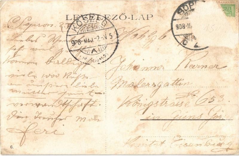 Beschreibung: 1908 Sopron, Újteleki utca, gyógyszertár, Liesingi sör plakátja, üzlet / Liesinger Bier, Gemischwaaren Handlung (Rb)