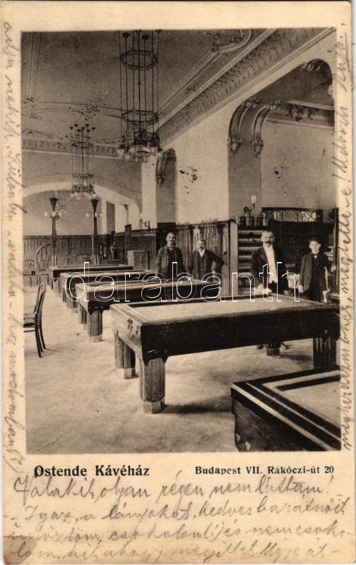 1910 Budapest VII. Ostende kávéház, belső biliárd asztalokkal. Rákóczi... https://www.darabanth.com/de/32-Gross-Auktion/32.1/Ansichtskarten/Ungarn~13725/1910-Budapest-VII-Ostende-kavehaz-belso-biliard-asztalokkal-Rakoczi-ut-20~II1940757