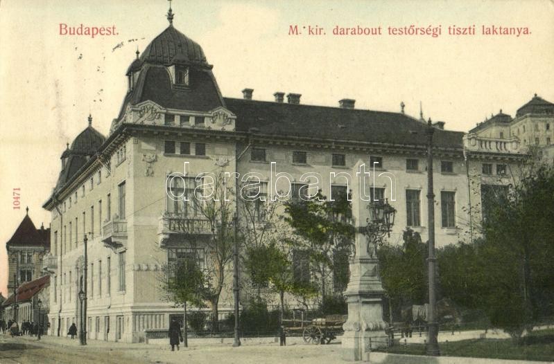 1911 Budapest I. M. kir. darabont testőrségi tiszti laktanya. Attila ú... https://www.darabanth.com/de/32-Gross-Auktion/32.1/Ansichtskarten/Ungarn~13725/1911-Budapest-I-M-kir-darabont-testorsegi-tiszti-laktanya-Attila-ut-12-Taussig-A-kiadasa~II2035707