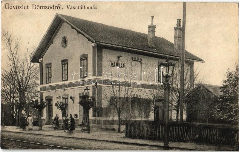 1911 Dömsöd, vasútállomás. Weisel Isráel kiadása https://www.darabanth.com/de/32-Gross-Auktion/32.1/Ansichtskarten/Ungarn~13725/1911-Domsod-vasutallomas-Weisel-Israel-kiadasa~II2033003
