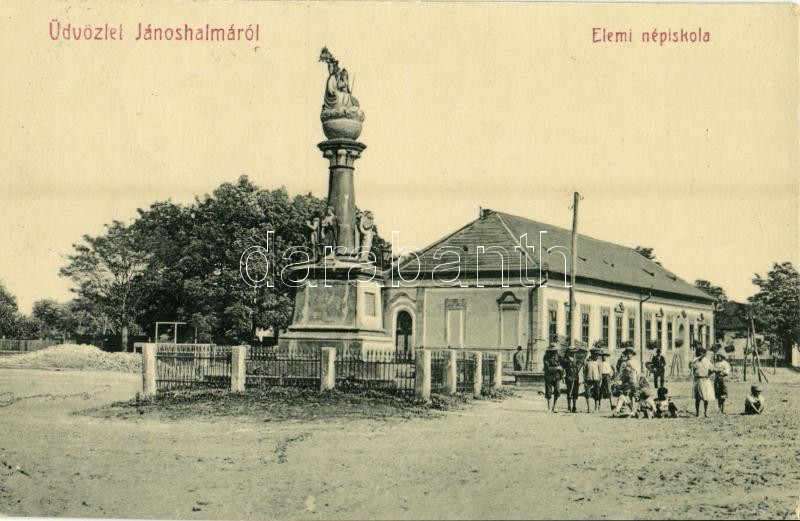 1911 Jánoshalma, Elemi népiskola, Szentháromság szobor. W.L. 1906. (EK... https://www.darabanth.com/de/32-Gross-Auktion/32.1/Ansichtskarten/Ungarn~13725/1911-Janoshalma-Elemi-nepiskola-Szentharomsag-szobor-WL-1906-EK~II2035726
