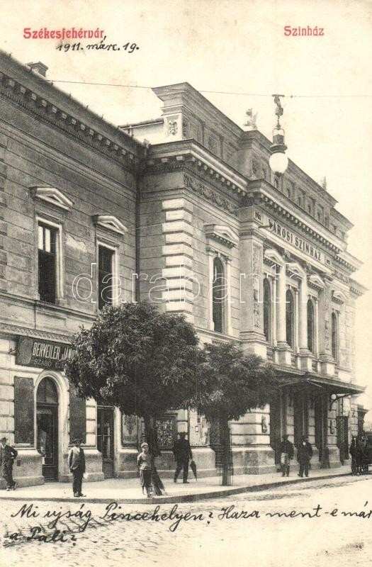 1911 Székesfehérvár, színház, Berveiler János szabó üzlete https://www.darabanth.com/de/32-Gross-Auktion/32.1/Ansichtskarten/Ungarn~13725/1911-Szekesfehervar-szinhaz-Berveiler-Janos-szabo-uzlete~II1866092