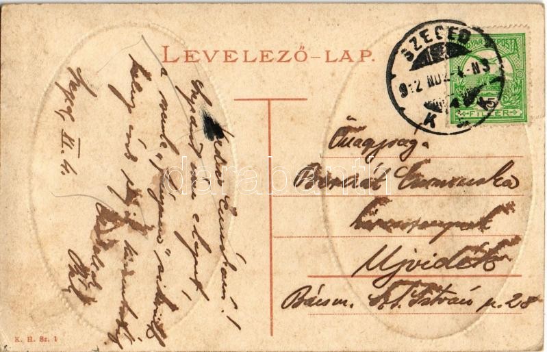 Beschreibung: 1912 Szeged, Erzsébet szobor, Ungár máyer palota (apró szakadás / tin ytear)