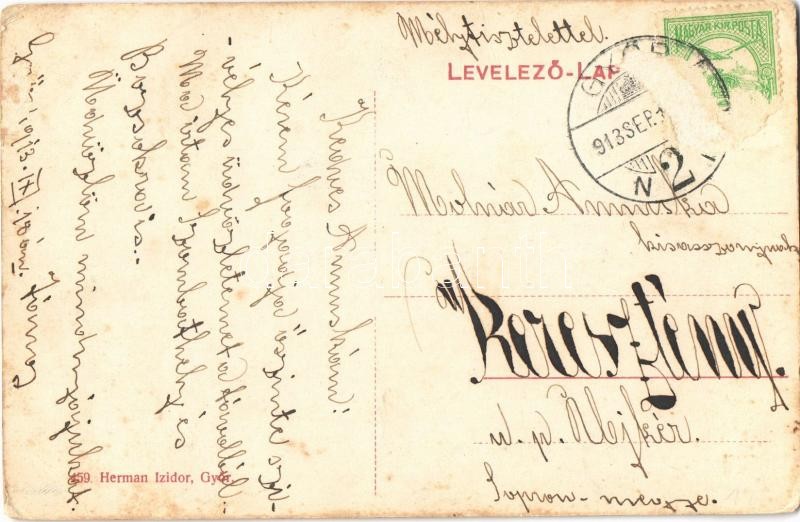 Beschreibung: 1913 Győr, Bisinger sétány, Élet- és Járadék Biztosító Intézet ügynöksége. Herman Izidor kiadása (Rb)