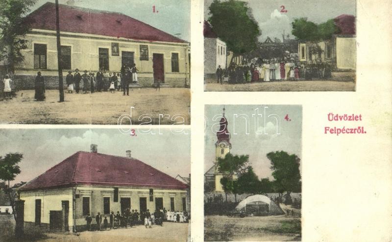 1917 Felpéc, Svacz Lajos vendéglője és vegyeskereskedése, Erdős Gyula lakháza, Wolf Jakab nagyvendéglője és vegyeskereskedése, Evangélikus templom (EK)
