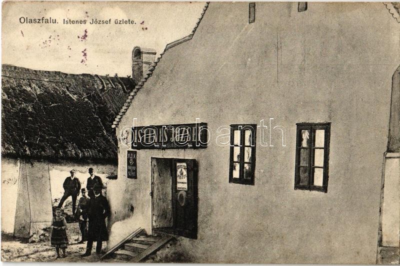 Beschreibung: 1919 Olaszfalu, Istenes József üzlete és saját kiadása