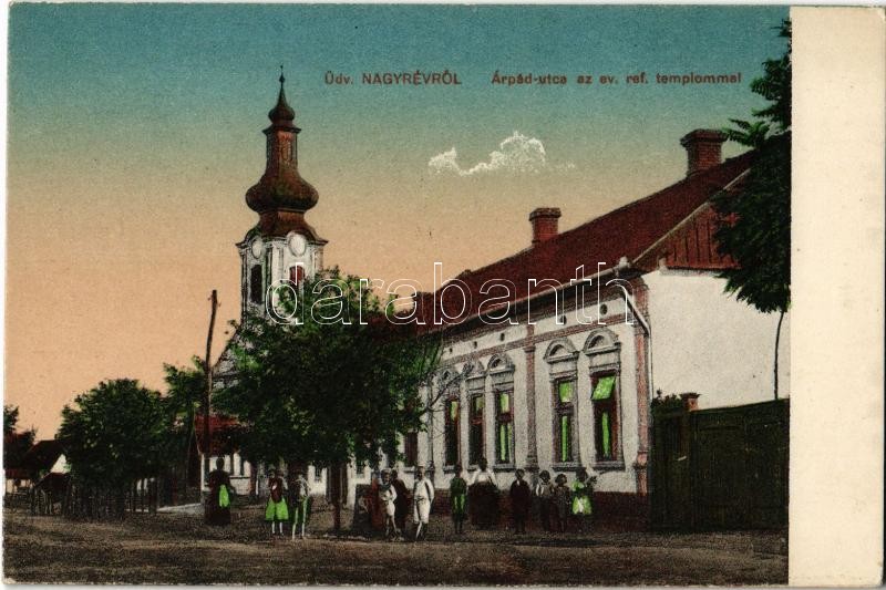 1922 Nagyrév, Árpád utca, Református templom https://www.darabanth.com/de/32-Gross-Auktion/32.1/Ansichtskarten/Ungarn~13725/1922-Nagyrev-Arpad-utca-Reformatus-templom~II2029109