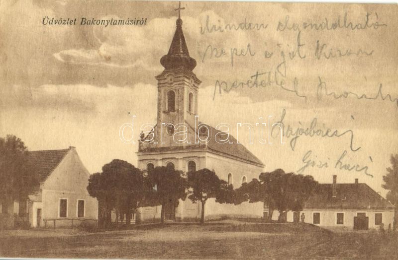 Bakonytamási, Evangélikus templom https://www.darabanth.com/de/32-Gross-Auktion/32.1/Ansichtskarten/Ungarn~13725/Bakonytamasi-Evangelikus-templom~II2026648