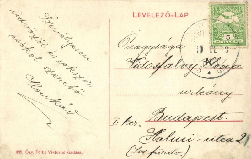 Beschreibung: Balatonalmádi, Gőzhajó kikötő és Baross gőzös. Özv. Pethe Viktorné kiadása