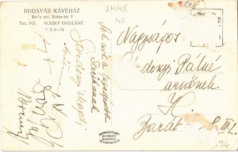 Budapest II. Pomikalszky Gyuláné Budavár kávéháza, belső. Széna tér 7.... https://www.darabanth.com/de/32-Gross-Auktion/32.1/Ansichtskarten/Ungarn~13725/Budapest-II-Pomikalszky-Gyulane-Budavar-kavehaza-belso-Szena-ter-7-Rb~II2046615