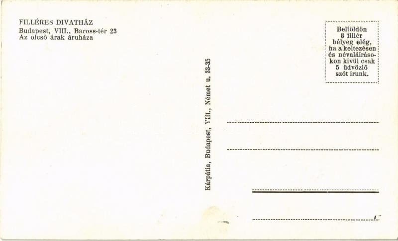 Budapest VII. Baross tér és Rottenbiller utca sarok, Unger Ernő Fillér... https://www.darabanth.com/de/32-Gross-Auktion/32.1/Ansichtskarten/Ungarn~13725/Budapest-VII-Baross-ter-es-Rottenbiller-utca-sarok-Unger-Erno-Filleres-Divathaza-Baross-ter~II2035250