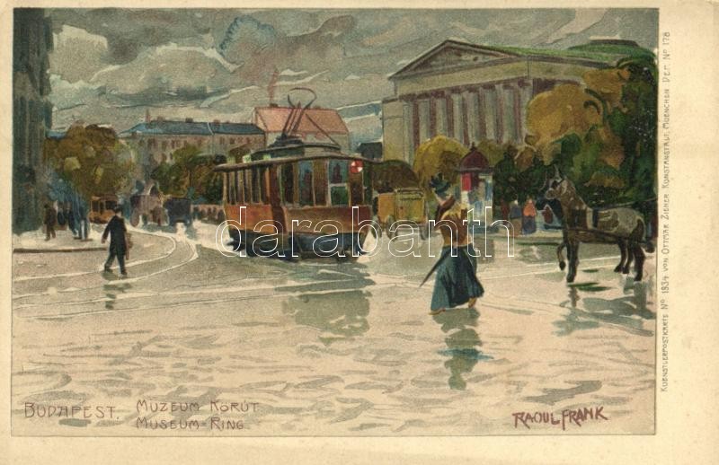 Beschreibung: Budapest VIII. Múzeum körút, villamos télen. Kuenstlerpostkarte No. 1934. von Ottmar Zieher, litho s: Raoul Frank