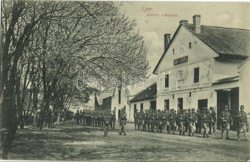 Eger, Kánitz laktanya katonákkal https://www.darabanth.com/de/32-Gross-Auktion/32.1/Ansichtskarten/Ungarn~13725/Eger-Kanitz-laktanya-katonakkal~II2035580